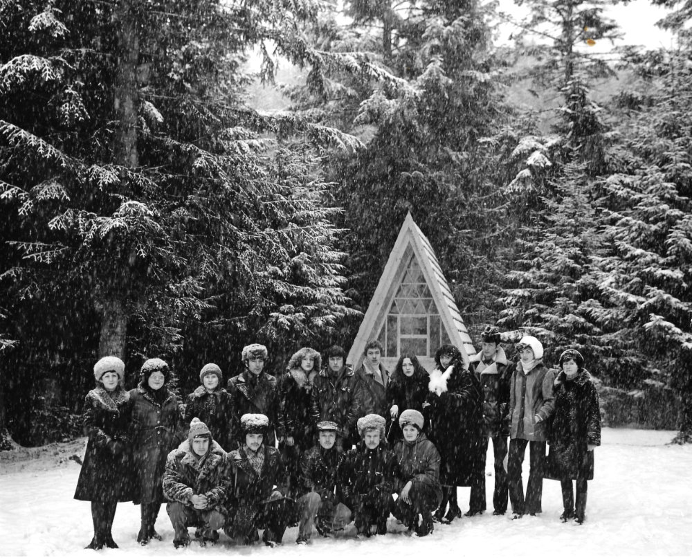 Another large photo: January 1981, a year after my divorce. I went on a New Year holiday ski vacation to the Carpathian Mountains with my friend Zoya. Our trip started in Ivano-Frankovsk, then we traveled around the Carpathian mountains by bus and stayed in the ski resort of Yaremche for several days.